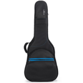 Custodia per chitarra semiacustica con top piatto e rivestimento in similpelle goffrata nera opaca. L'imbottitura interna è in velluto nero ed ha uno scomparto per gli accessori con coperchio. |