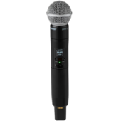 Trasmettitore handheld per serie SLX-D, con capsula Beta 58. Banda G59 (470 – 514 MHz). Potenza di trasmissione selezionabile 1-10mW. Fino a 32 sistemi per banda. Portata max.100mt. Risposta in frequenza: 20-20KHz. Dinamica: 120dB. Compatibile con tutte le capsule Shure. Robusto chassis in alluminio. Porta IR per la sincronizzazione con il ricevitore, display OLED per impostazioni e monitoraggio dello stato.